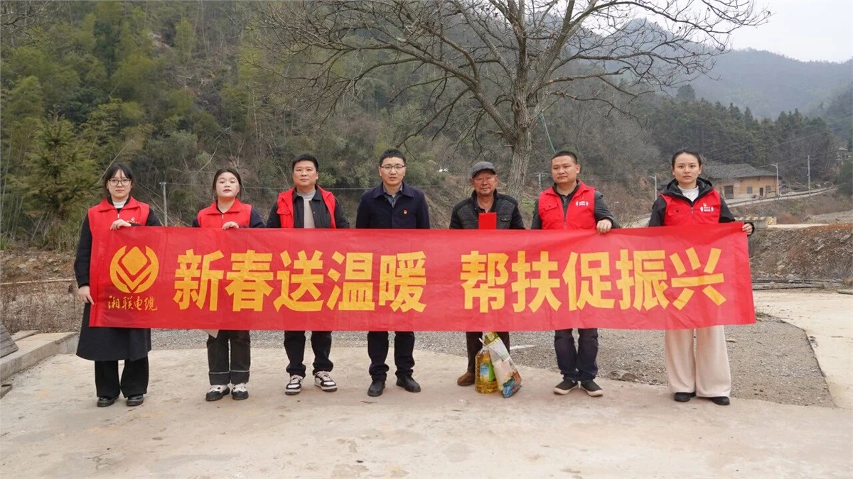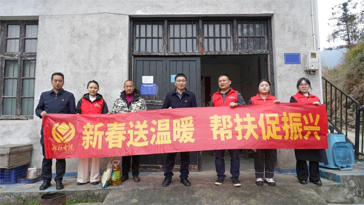 歲末寒冬,新春將至,湘聯電纜黨支部攜手瀏陽經開區鄉村振興駐村工作隊,奔赴瀏陽市沙市鎮桃源村,開展新春慰問走訪活動,為當地困難家庭送去米、油等生活物資與慰問資金,以點滴善舉傳遞企業溫情,用實際行動助力鄉村振興。