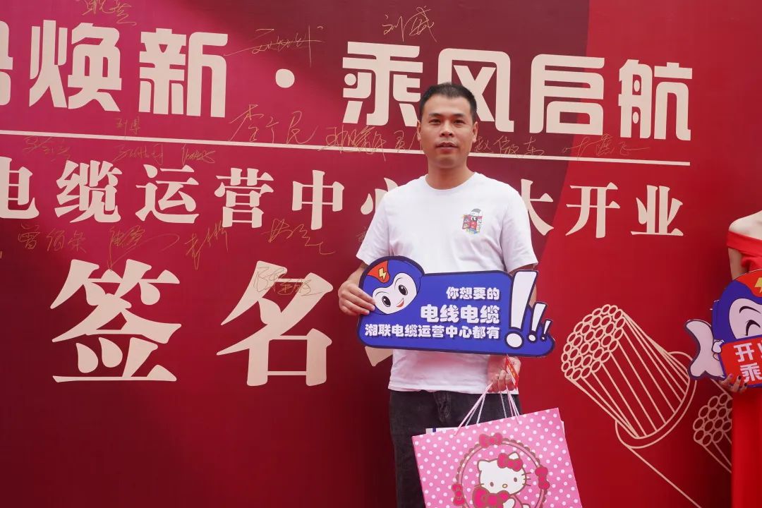 郴州市佳琪物資有限公司總經(jīng)理許靈健許總作為經(jīng)銷商代表在開業(yè)典禮上致賀詞,在發(fā)言中,他表達了對湘聯(lián)電纜的高度認可,并表示希望能夠和湘聯(lián)電纜一起,同心同行,一起筑造更美好的明天。