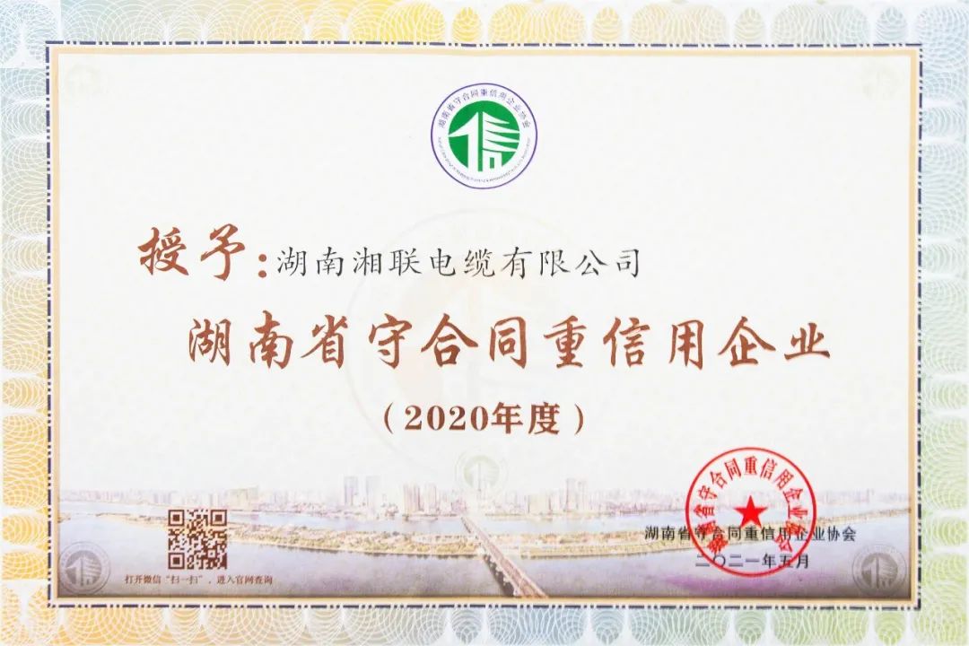 憑借著優質的產品和高效的服務以及誠信的經營,湘聯電纜獲得了客戶和行業的廣泛認可和贊譽。2022年,湘聯電纜通過國家電網“供應資質能力”審核,榮獲“湖南省知名品牌”“2021年度湖南省守合同重信用企業”“湖南省專精特新‘小巨人’企業”“《品牌中國》重點推薦品牌”“綠色工廠”“制造強省項目”等榮譽,收獲滿滿。