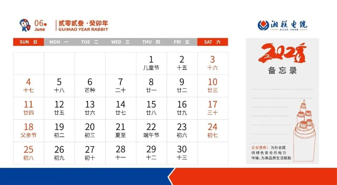 元旦快樂 | 敬呈2023年湘聯電纜月歷
