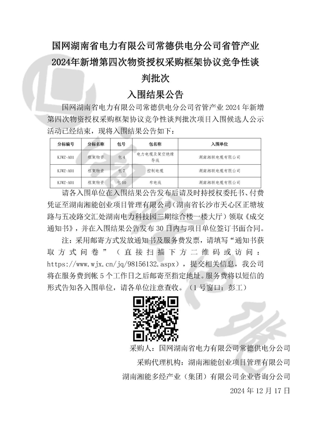 再傳佳訊,湘聯電纜入圍湖南9家地級市電力三產公司物資采購項目!
