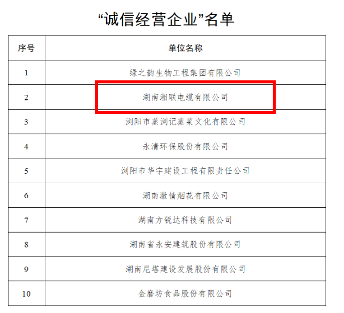 以誠立信,以信致遠,多年來,湘聯電纜以科學的經營管理理念,運用信息化工具對產品的設計、研發、生產、配送、銷售等進行全生命周期管理,全國建立500多個銷售網點,優質服務24小時不打烊,湘聯電纜的誠信體現在每一根線纜的生產制造、每一次的營銷服務、每一次的物流配送。此次獲評“誠信之星”是對湘聯電纜誠信經營、社會責任等方面卓越表現的高度認可,未來,湘聯電纜也將繼續用每一次的誠信履約高砌用戶心中的信任之墻。