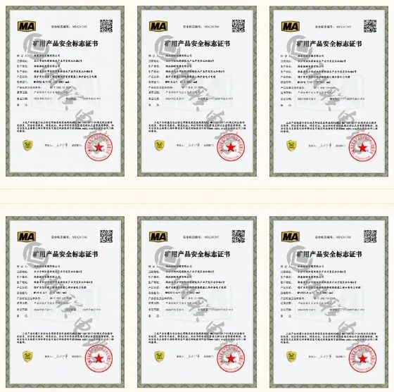 六款產品成功取得礦用產品安全標志證書